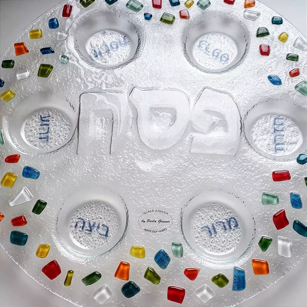 Cuidadosamente produzida artesanalmente em vidro de 4 a 6 mm de espessura, ideal para acomodar os alimentos do Seder. Cada peça é adornada com impressões em hebraico, identificando os nomes de forma elegante e autêntica para cada alimento. Com seu generoso diâmetro de 23 ou 36 cm, esta linda keará certamente embelezará sua mesa de Pessach, adicionando um toque especial à sua celebração.