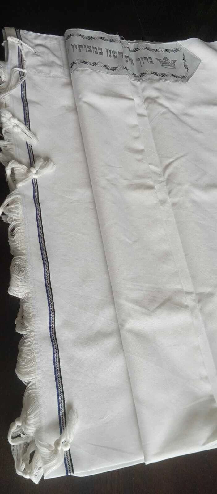 Xale de Oração de Poliéster com Listras Pretas – Importado de Israel